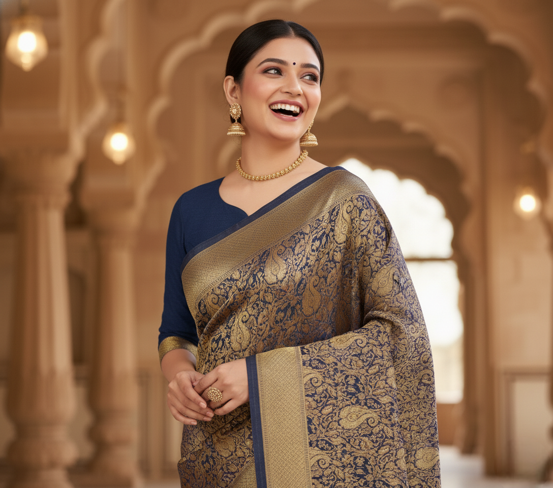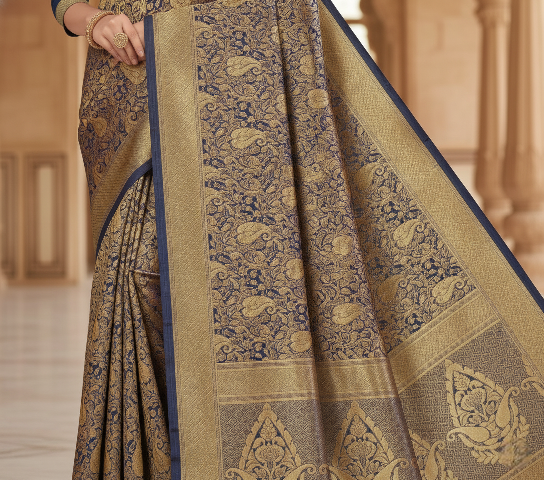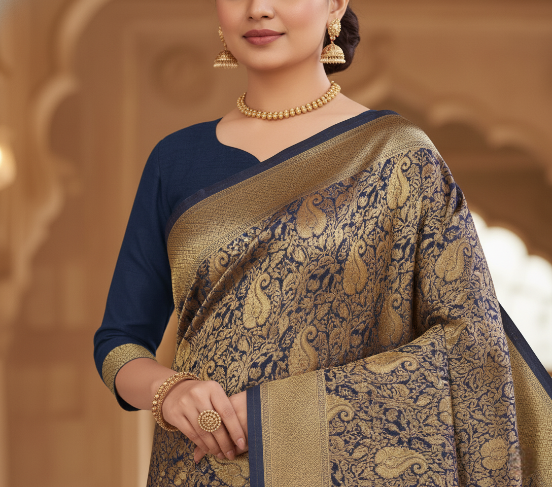 Navy Blue Banarasi Silk Saree