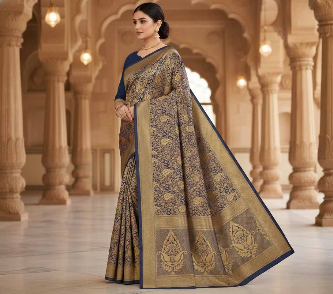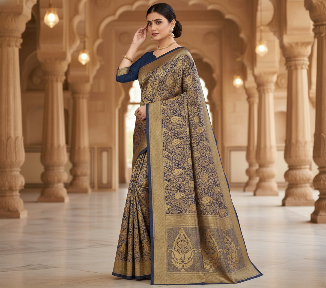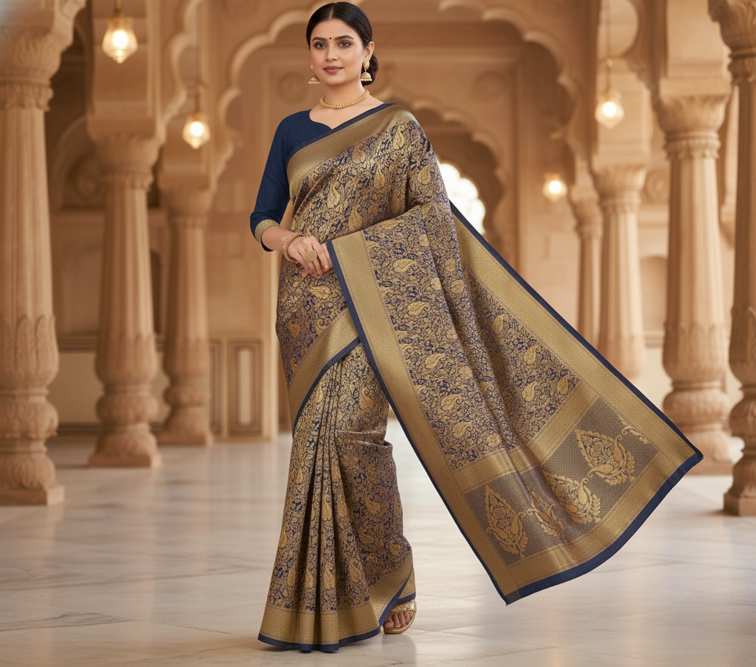 Navy Blue Banarasi Silk Saree
