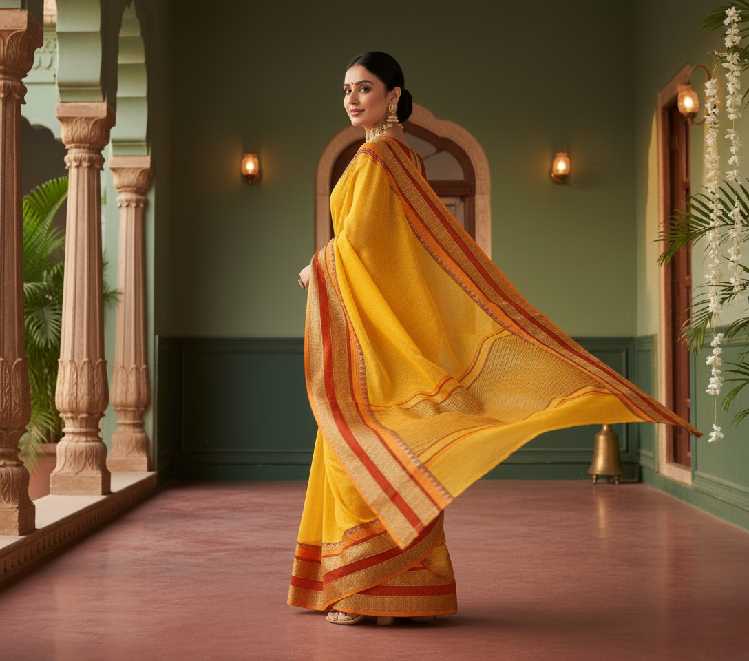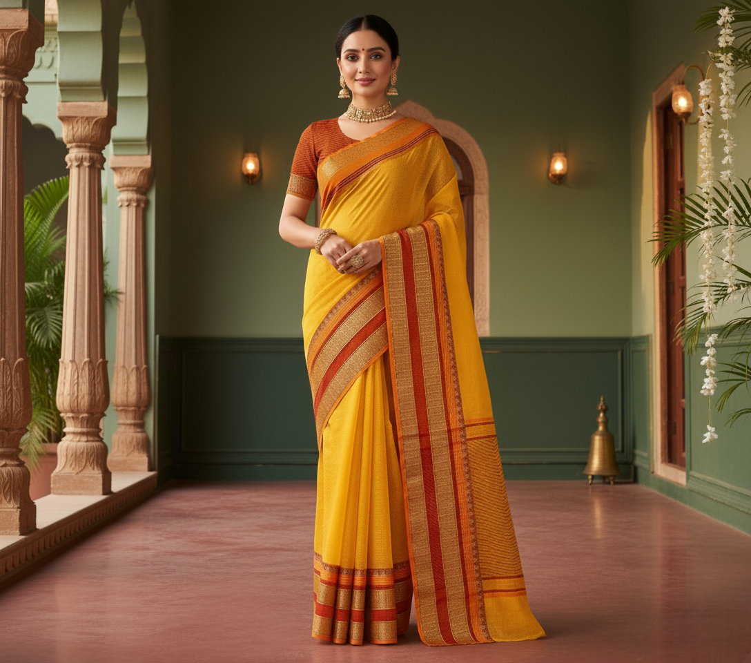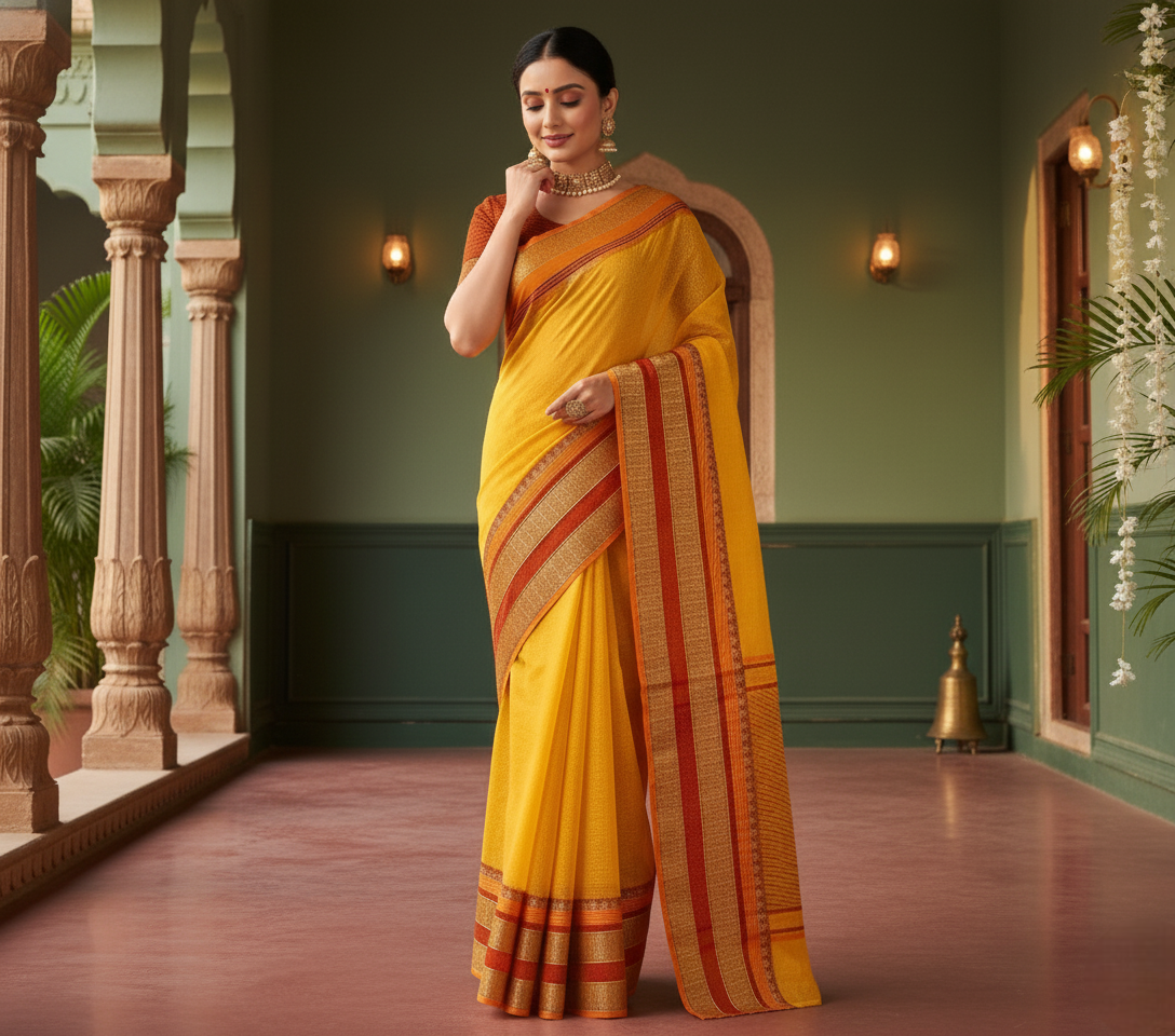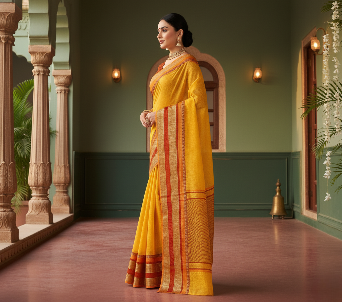 Sky Blue Kota Doria Cotton Border Saree