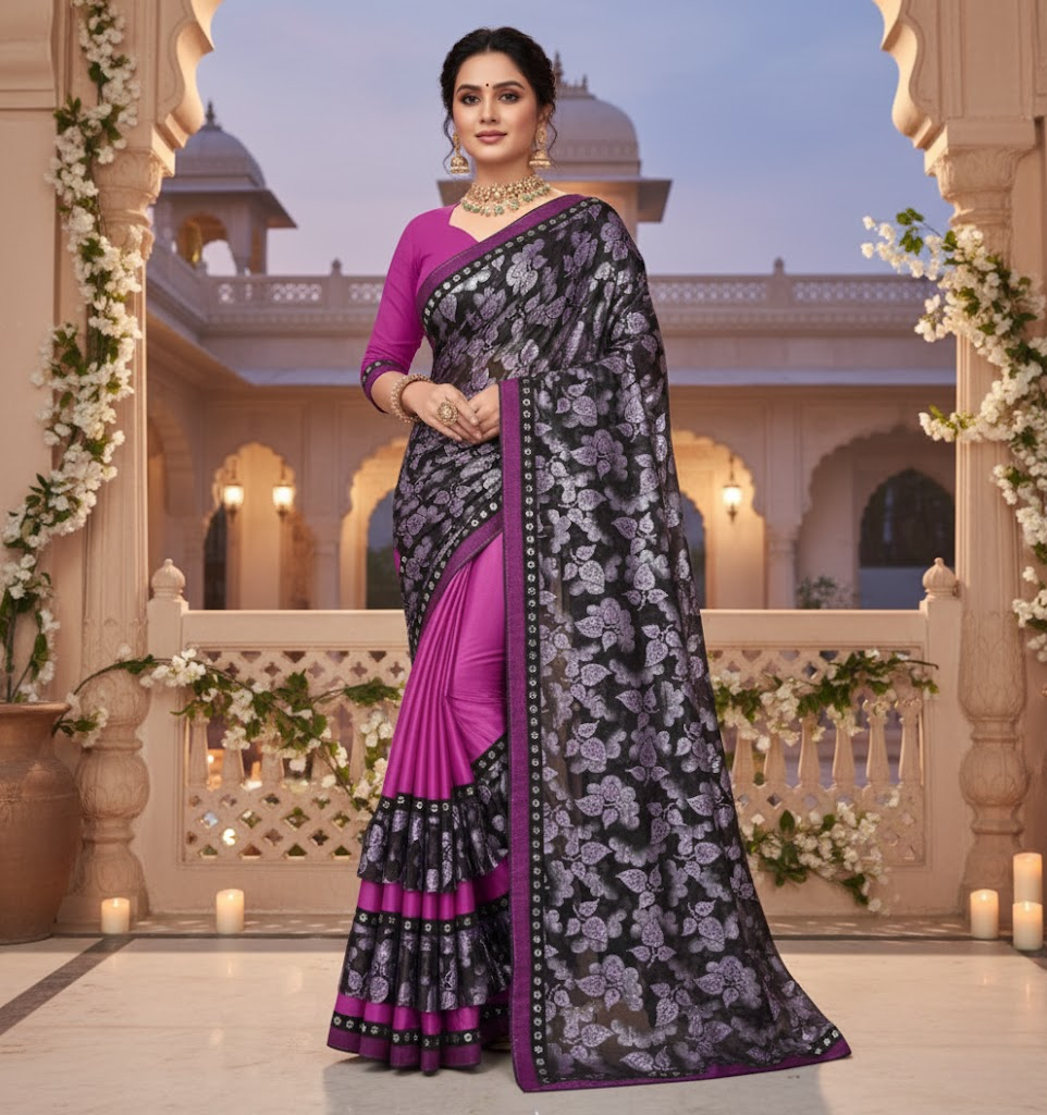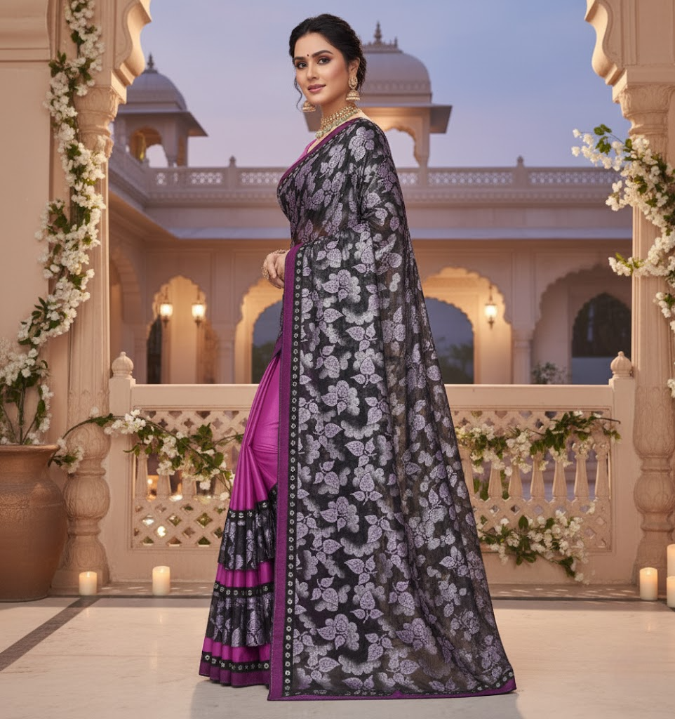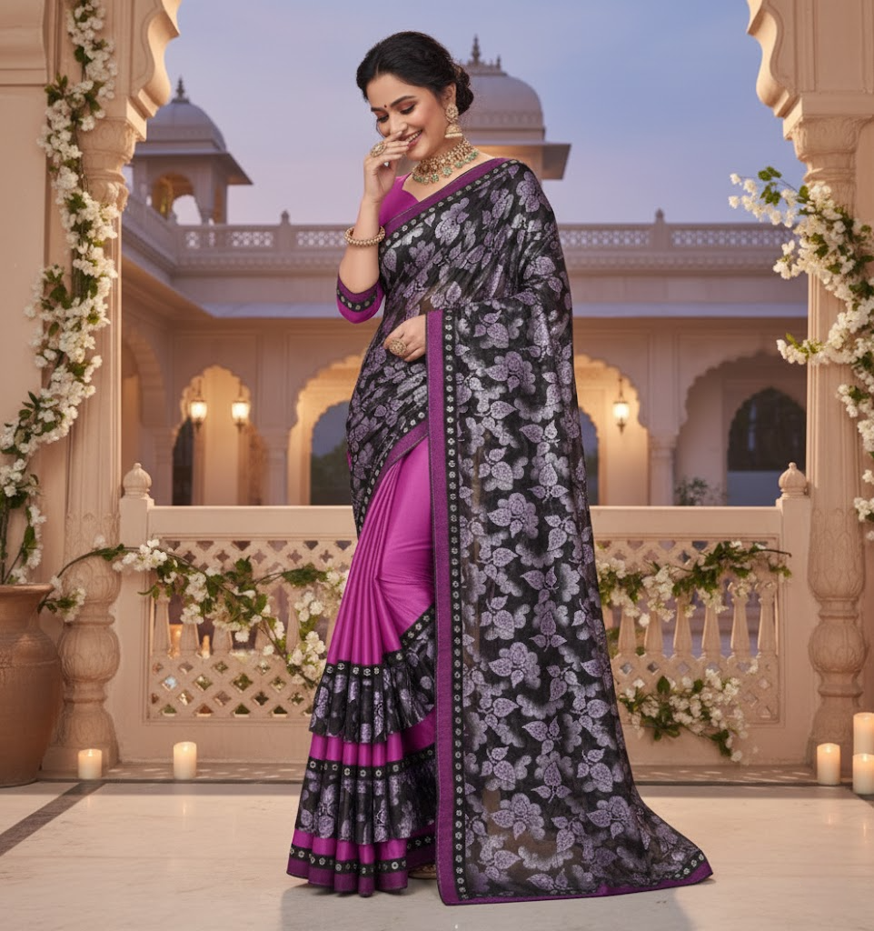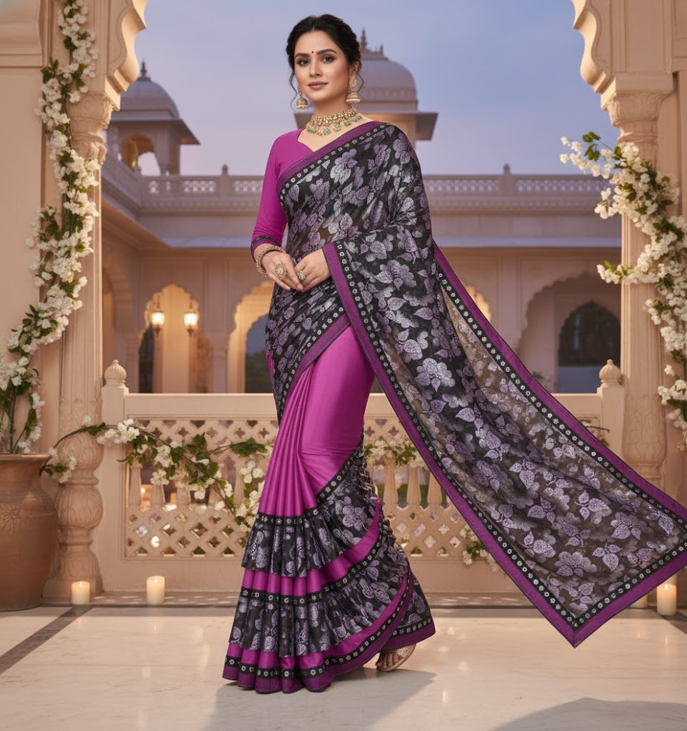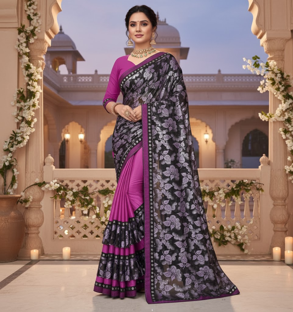 Saree Style: Half-Half Design with Stylish Ruffled Pleats