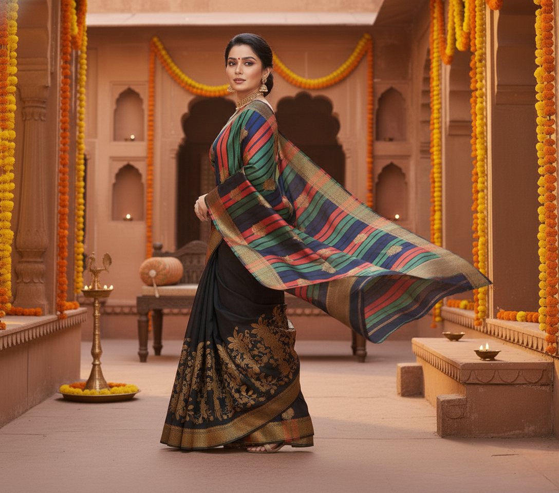 Black Banarasi Silk Saree
