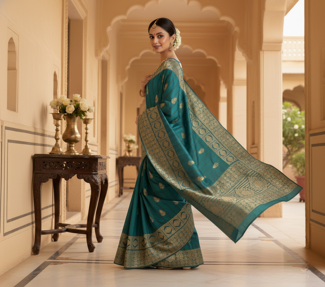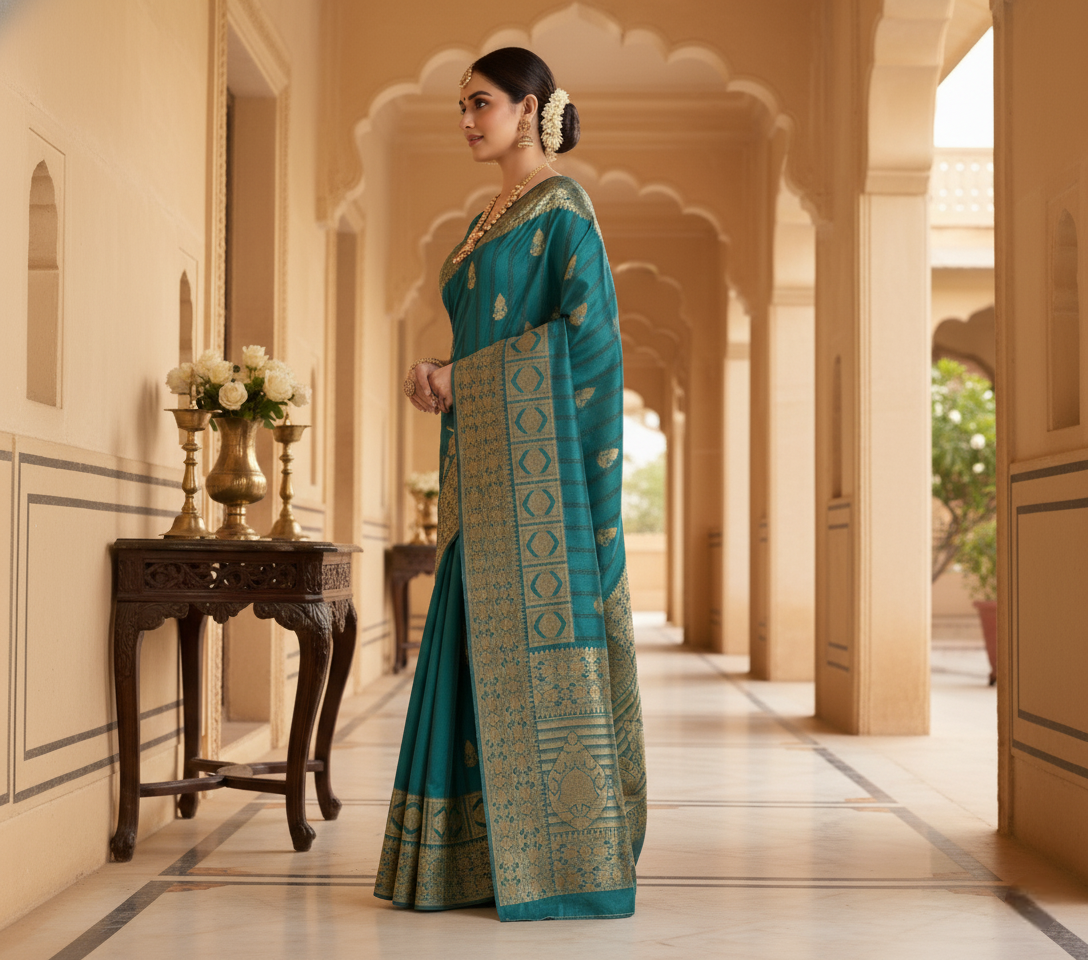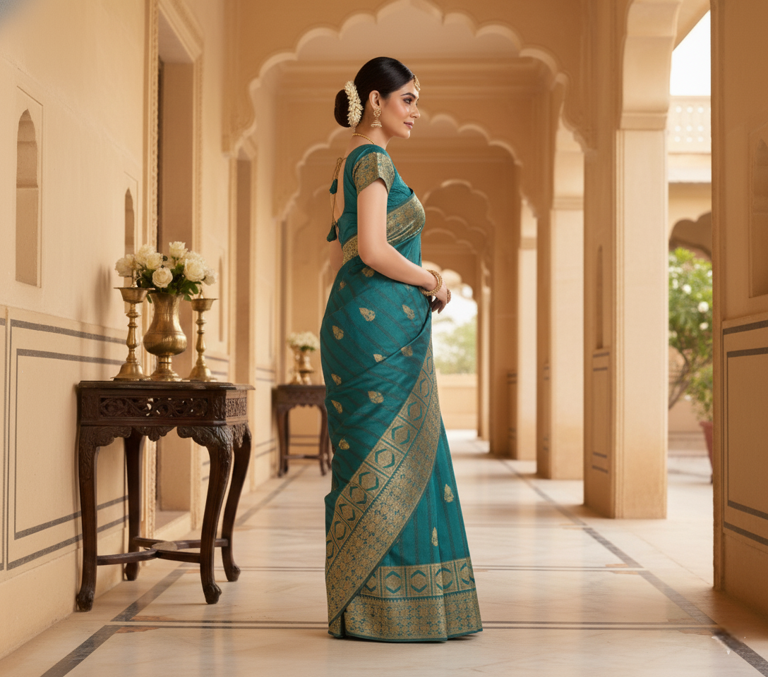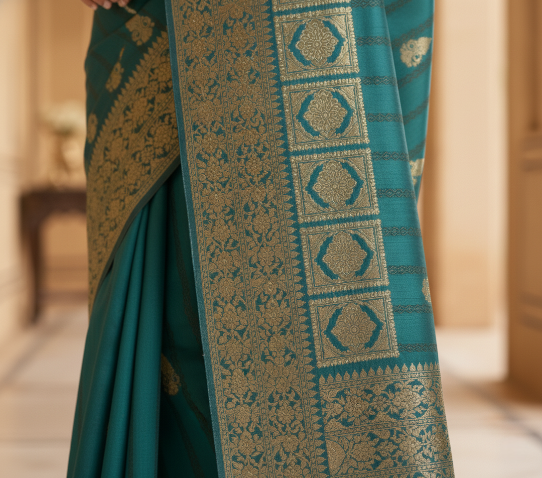 Saree Work: Rich Zari Weaving with Traditional Motifs and Border