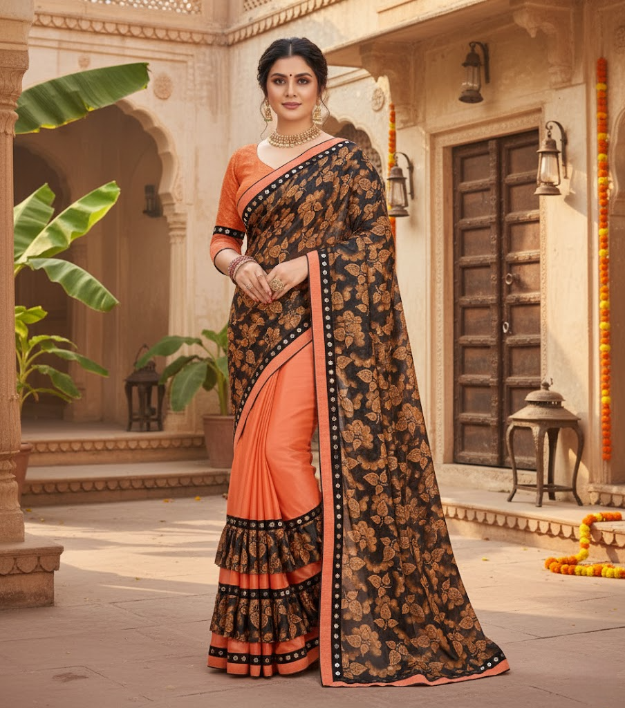 Saree Style: Half-Half Pattern with Designer Ruffled Pleats