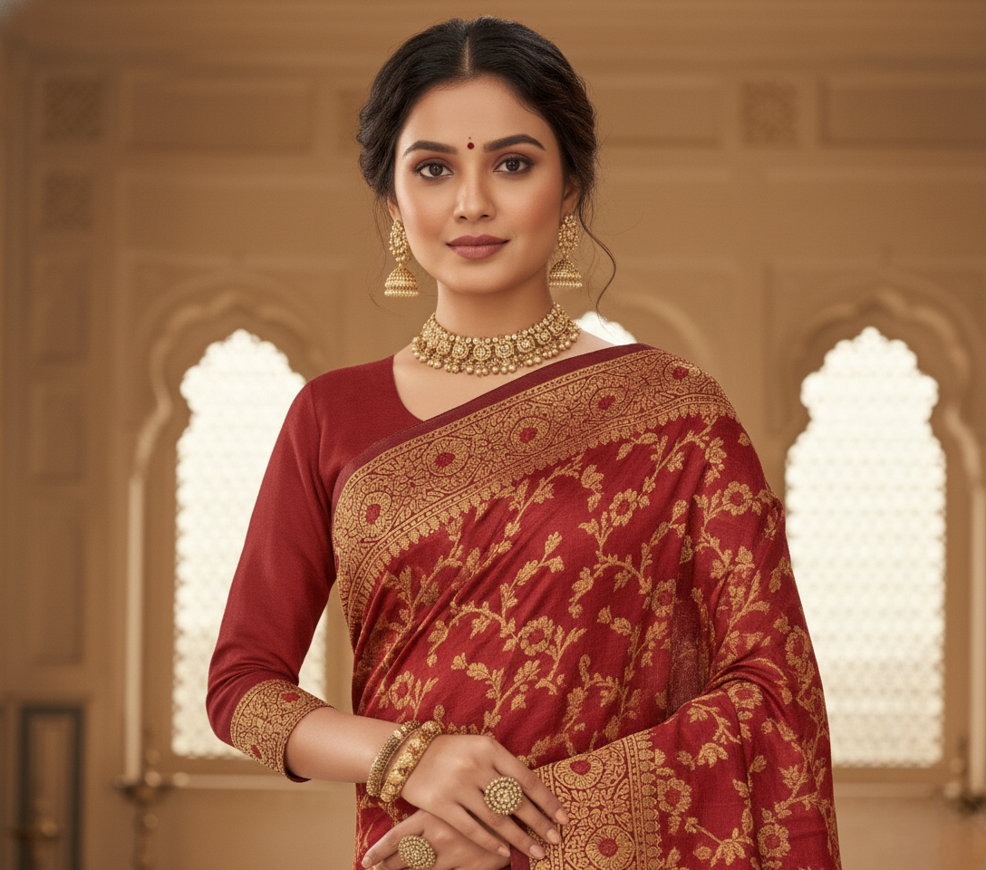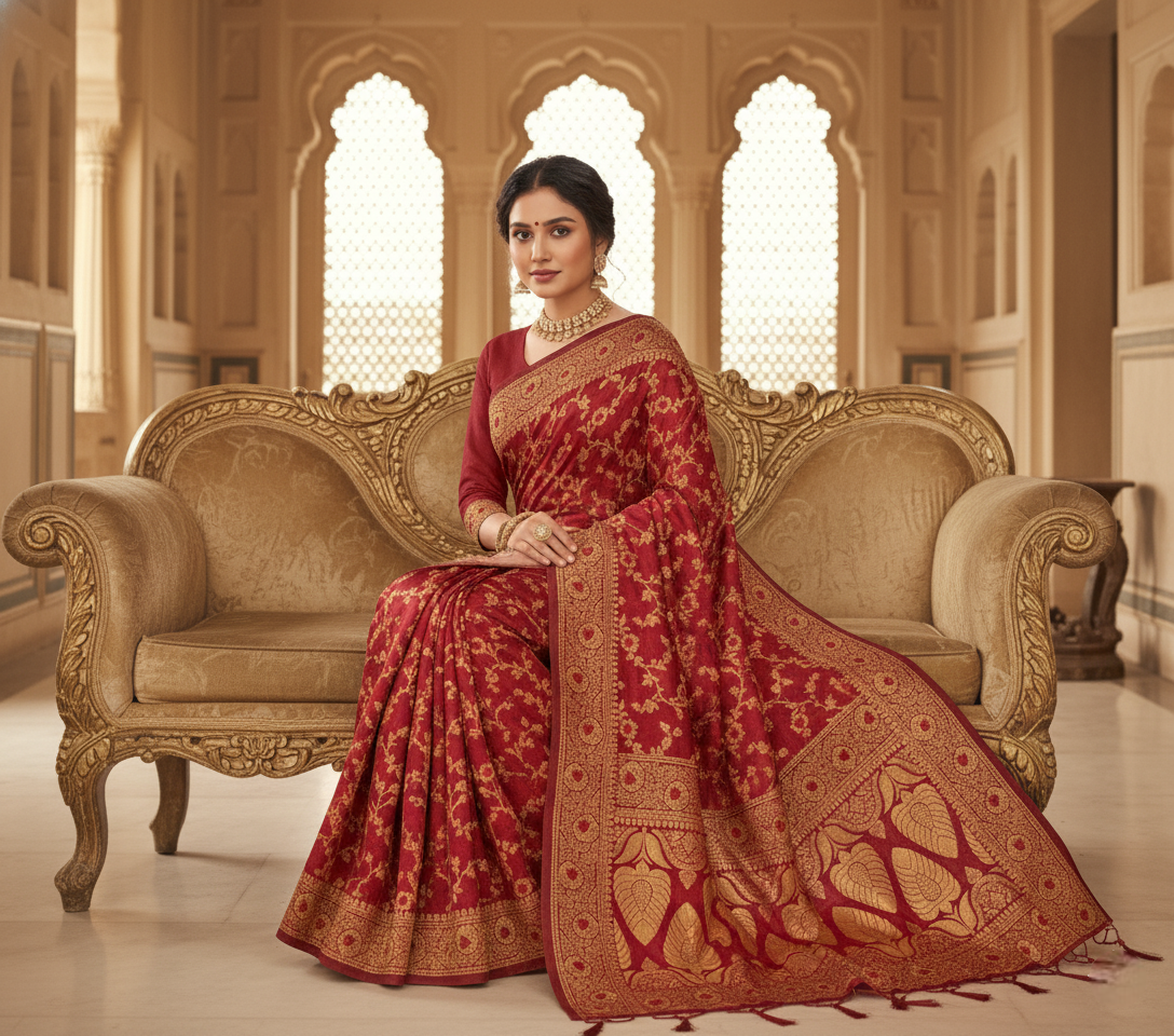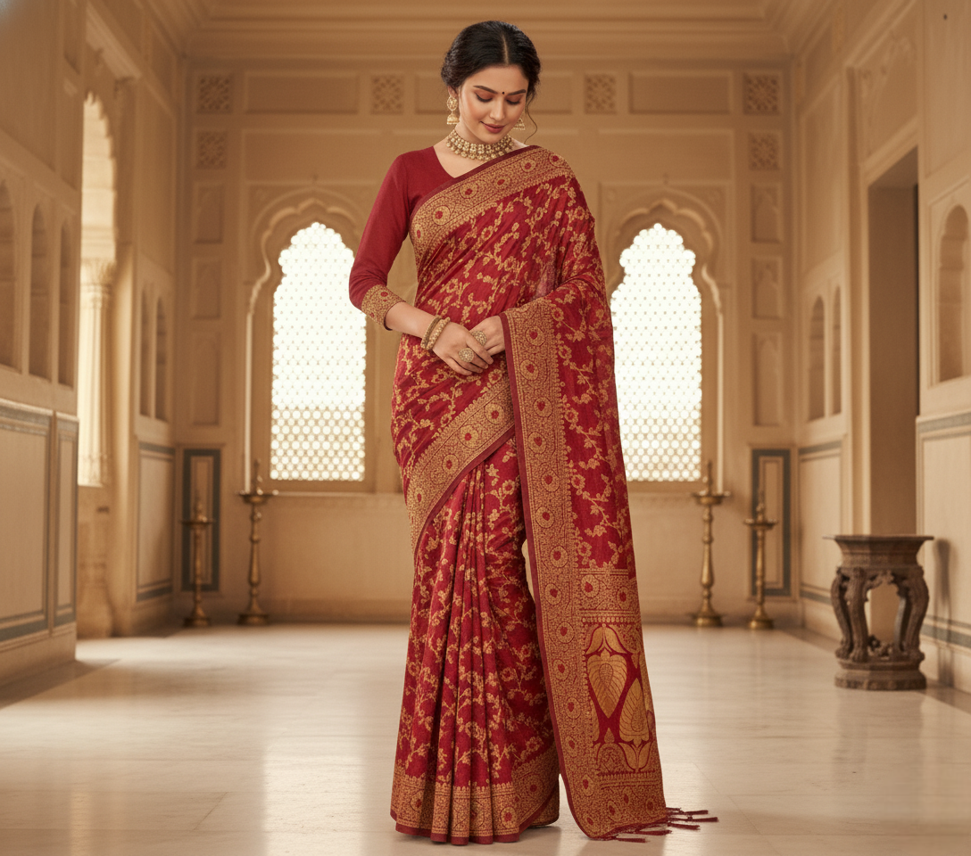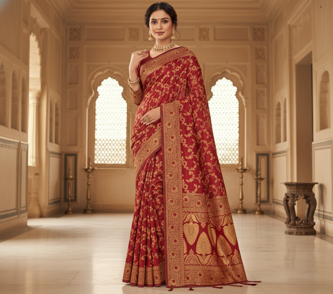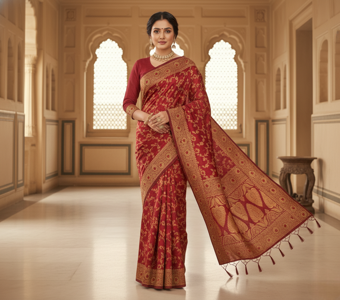 Maroon Banarasi Silk Saree