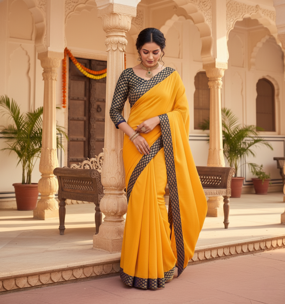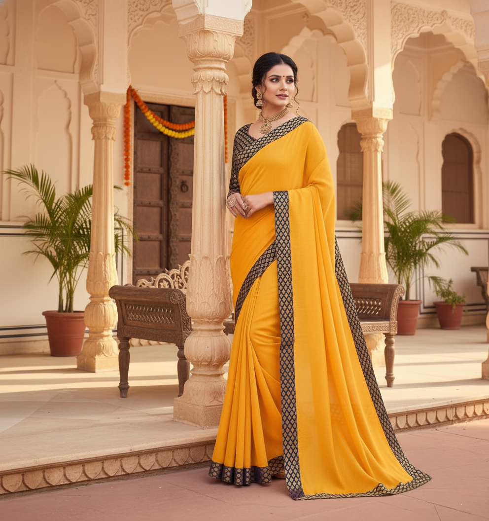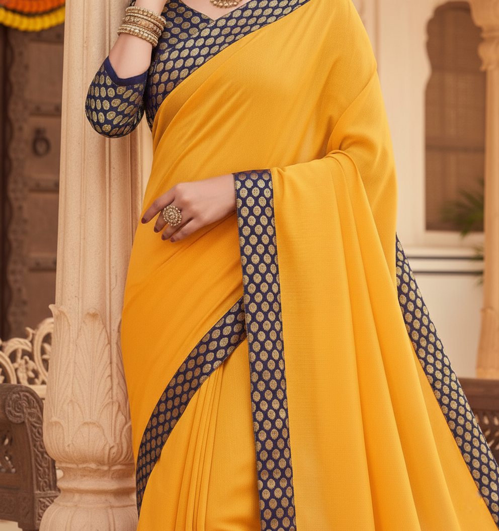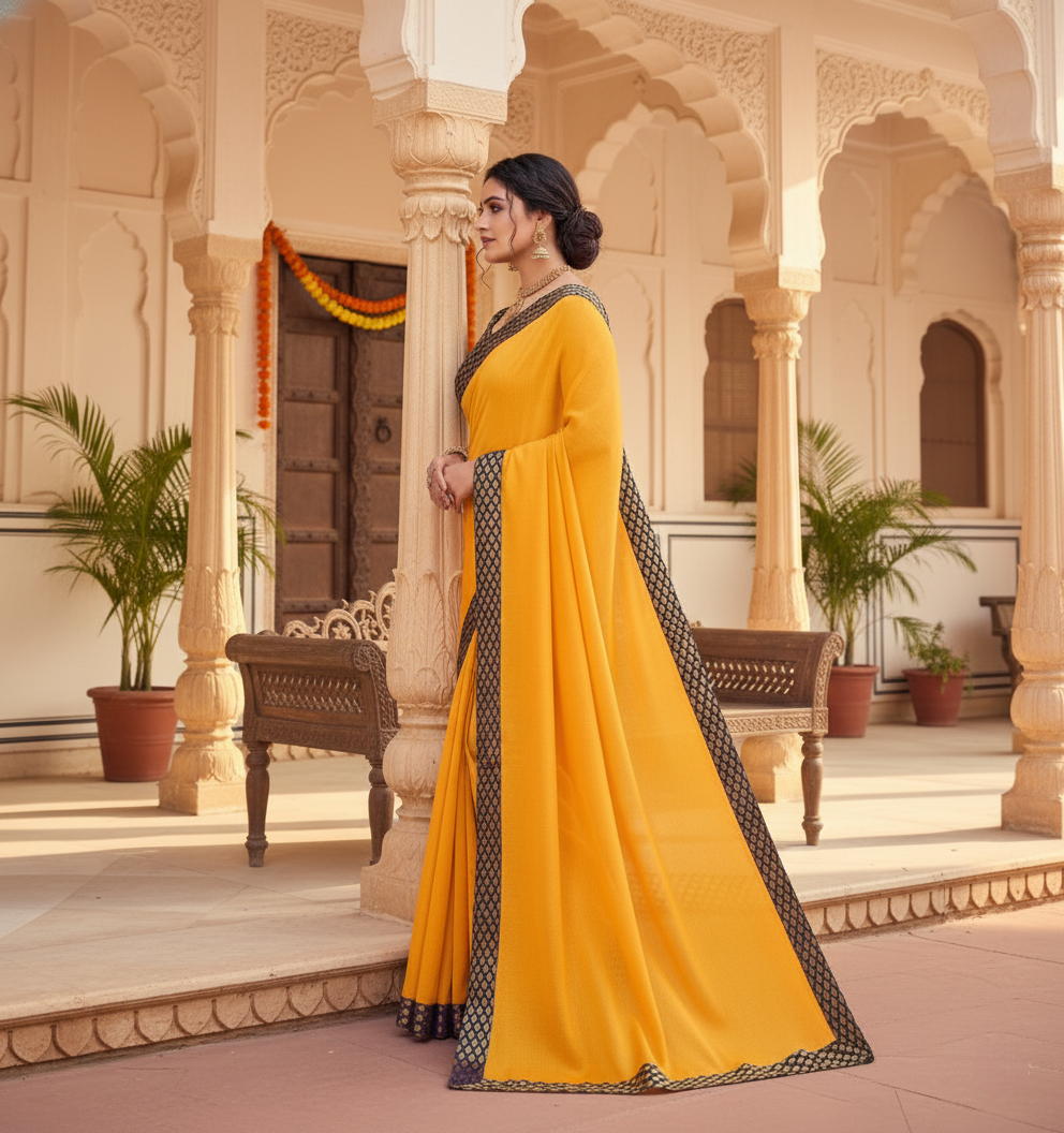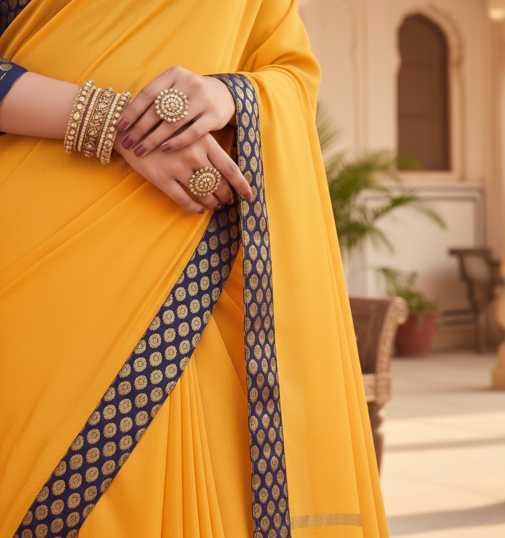 Gold Chanderi Cotton Lace Border Saree