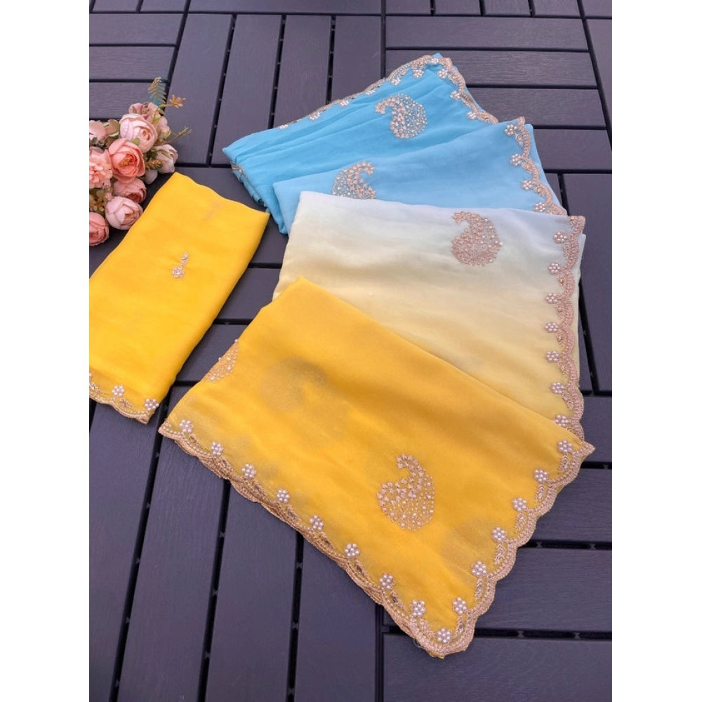 Generic Women's Digital Printed  Geogette Saree With Unstitched Blouse (Yellow, 5-6 Mtrs)